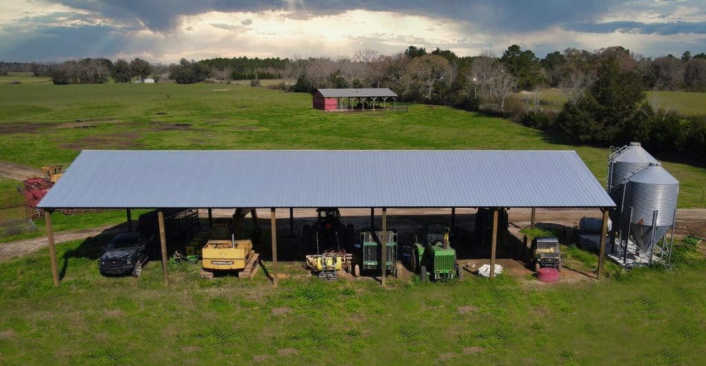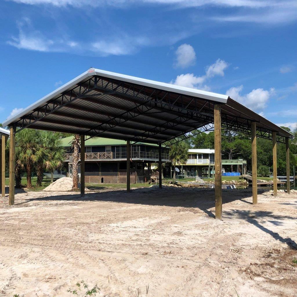 We offer Pole Barns with an all metal roofing system which allows for greater column span. Pole Barns can be installed or delivered with DIY instructions. Available with open or closed sides.